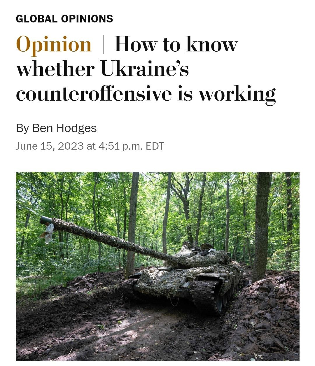 "Мы поймем, что главный удар начался, когда увидим крупные группировки бронетанковых войск — две-три бронетанковые бригады, атакующие в одном направлении", - заявил он в колонке для Washington Post.