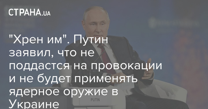 "Использование ядерного оружия теоретически возможно, если будет угроза существованию нашего государства или территориальной целостности. Но у нас нет необходимости его использовать. Кроме того, само рассуждение на эту тему снижает порог применения оружия. У нас больше оружия чем у стран НАТО, и они хотят уменьшить его число. Хотят, чтобы мы его сократили. Хрен им", - заявил глава Кремля.