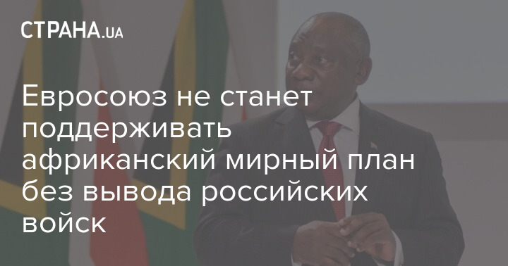 Евросоюз не станет поддерживать африканский мирный план, если он будет предусматривать заморозку боевых действий без выведения российских войск.