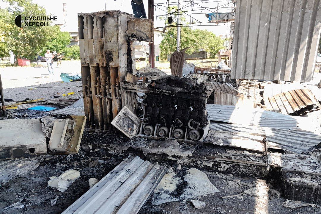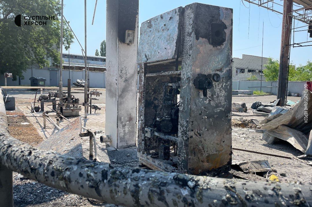 Также "Суспильне" публикует фото из Херсона после ночного обстрела и пожаров. Так сейчас выглядит сгоревшая автозаправочная станция.