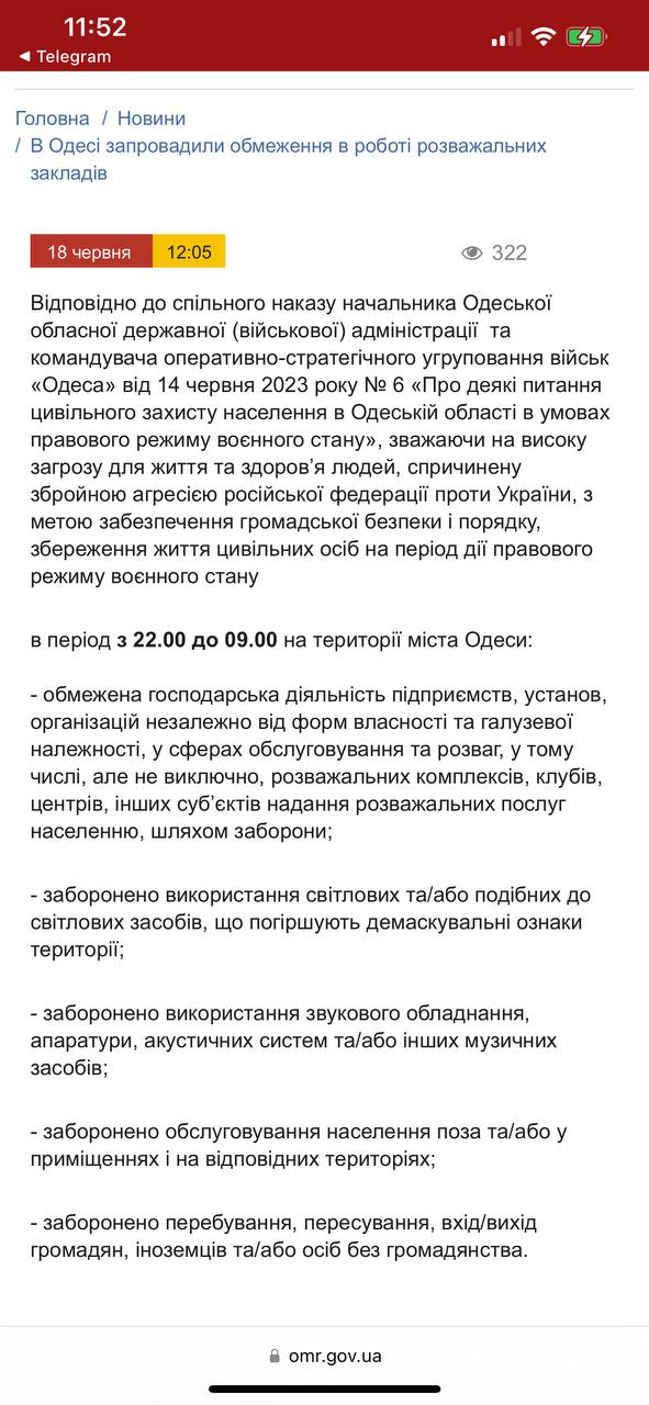 В Одессе ограничили работу развлекательных клубов. С 22:00 до 9:00 запрещена работа заведений в сфере обслуживания (развлекательных комплексов, клубов, центров, других субъектов предоставления развлекательных услуг населению).