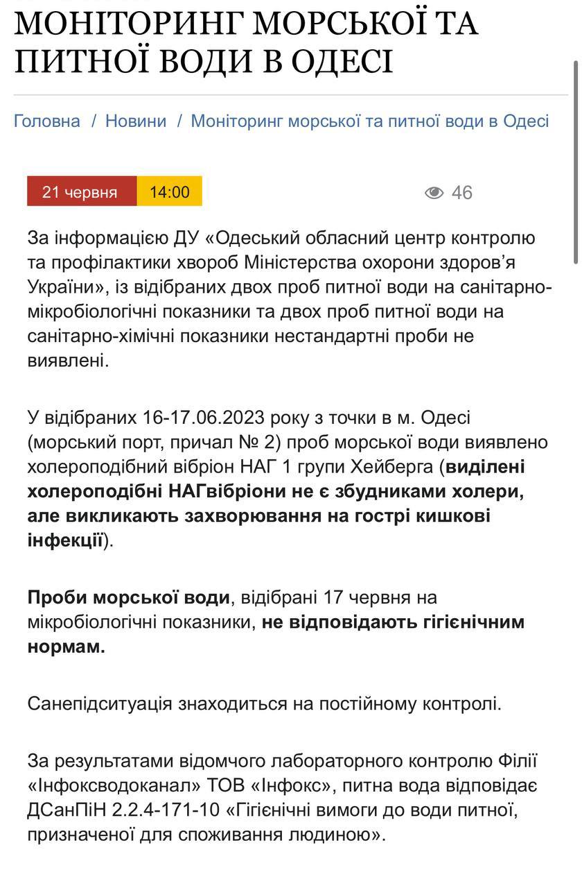 В Одессе в морской воде снова обнаружен холеровидный вибрион НАГ 1 группы Хейберга, который не является возбудителями холеры, но вызывает заболевания острыми кишечными инфекциями.