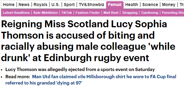 "Мисс Шотландия" устроила пьяную драку на стадионе и попала в расистский скандал, укусив охранника