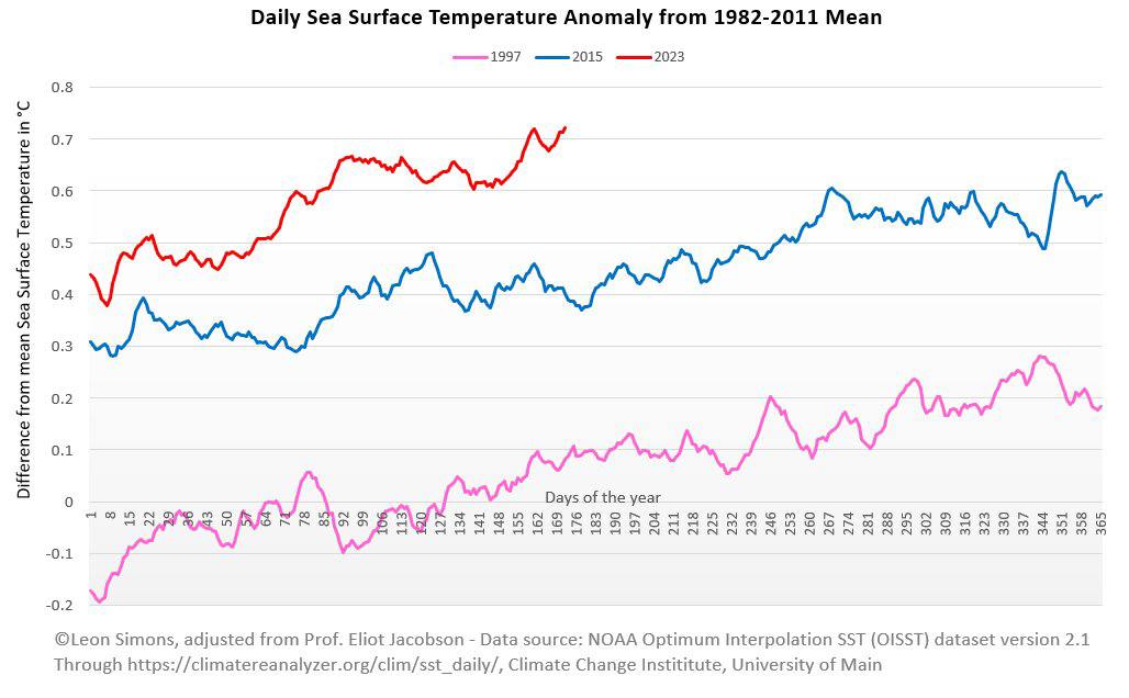 Симонс ссылается на данные Национального управления океанических и атмосферных исследований США, а также Института изменения климата при Университете штата Мэн.