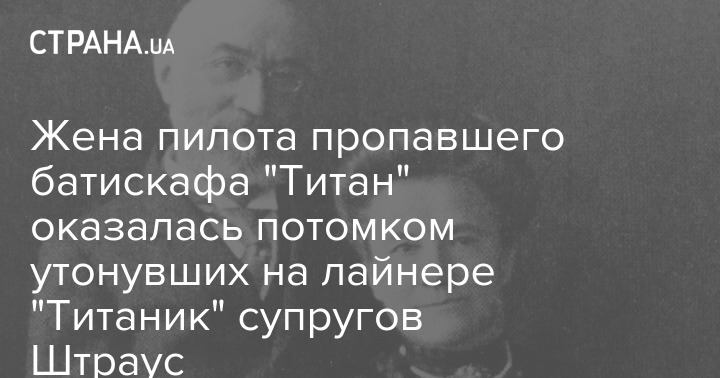 Жена пилота пропавшего батискафа "Титан" оказалась потомком утонувших на лайнере "Титаник" супругов Штраус