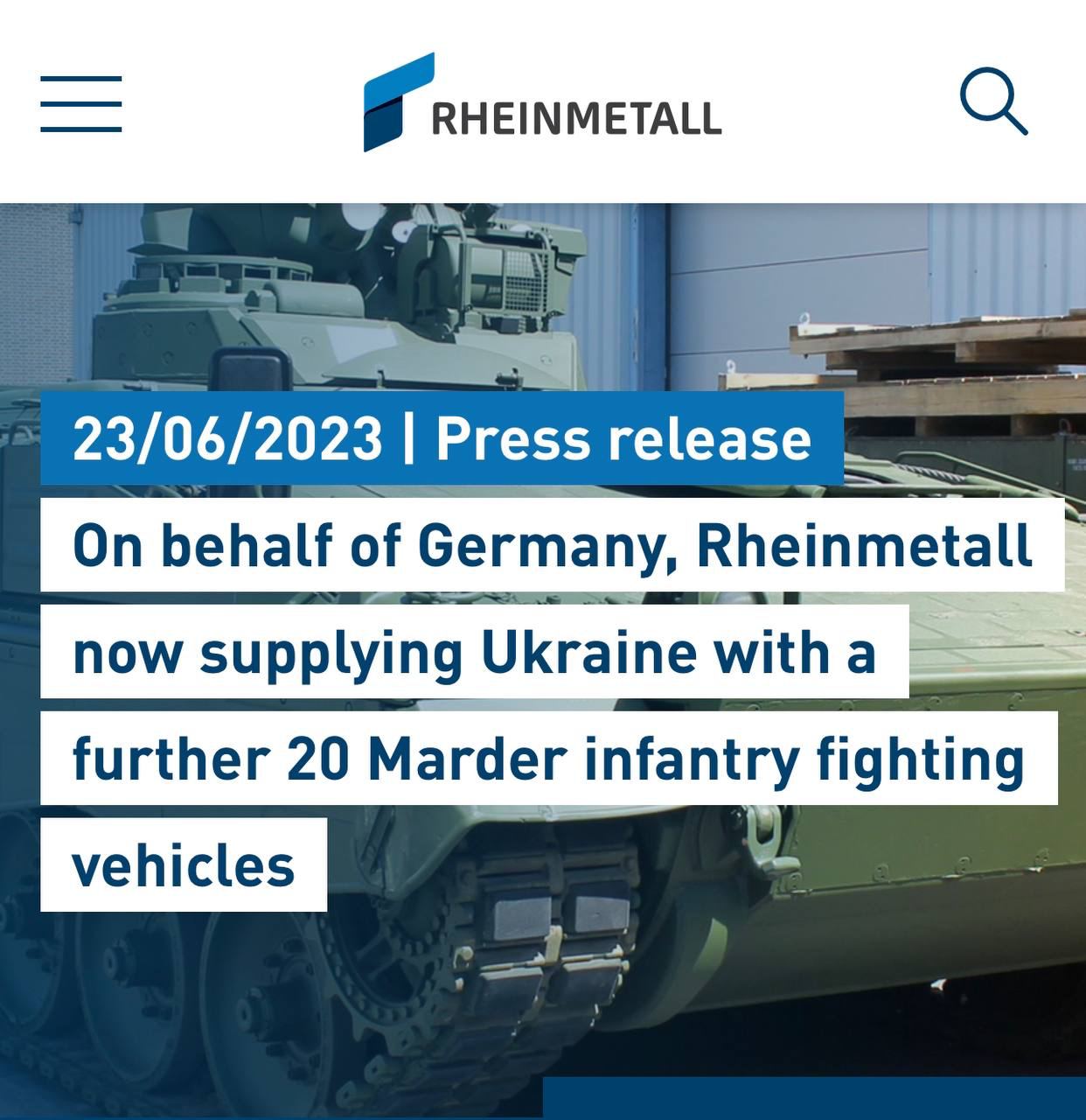 В целом компания по заказу правительства ФРГ начала работу по введению в строй еще 60 БМП Marder для дальнейшей отправки.