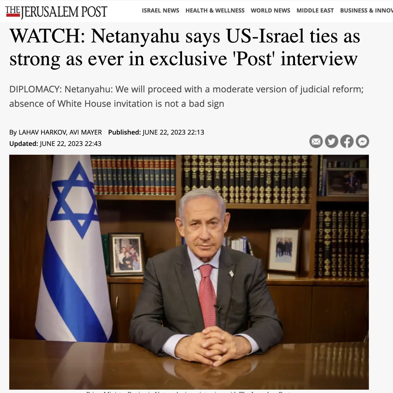Израиль не будет передавать Украине оружие, поскольку оно может попасть в Иран и быть использовано против самого Израиля, заявил премьер-министр Нетаньяху в интервью The Jerusalem Post.