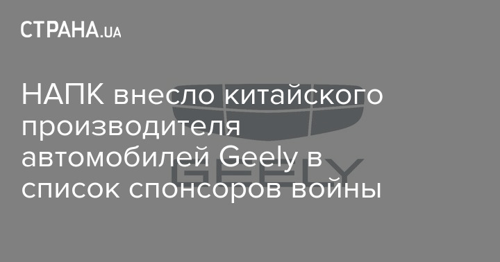 Национальное агентство по вопросам предотвращения коррупции (НАПК) внесло китайского производителя автомобилей Geely в список "спонсоров войны" за то, что компания продолжает работать на рынке РФ и платить налоги.
