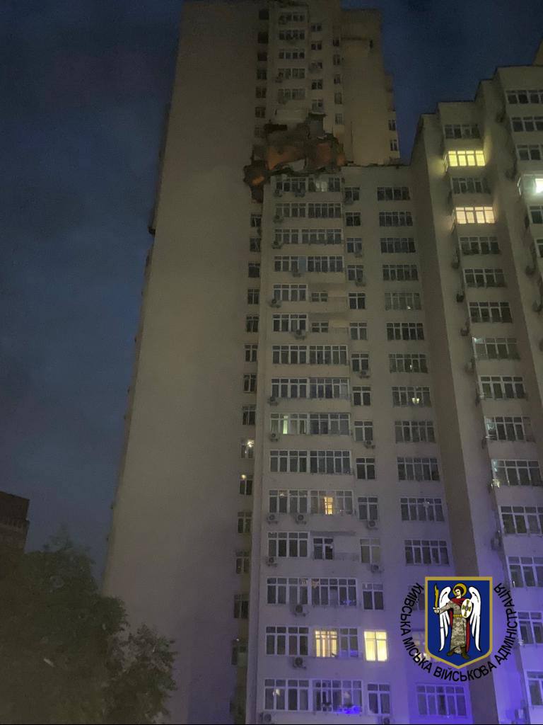 Последствия ночного обстрела в Киеве. Фото: КГВА