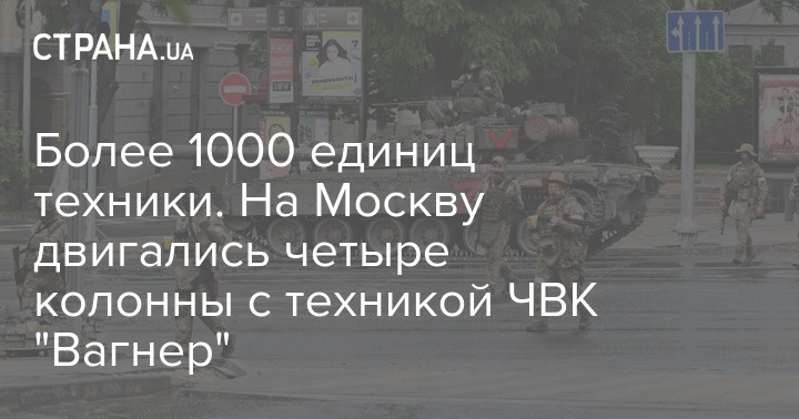 Вчера во время "пригожинского" мятежа в направлении Москвы двигались четыре колонны с техникой ЧВК "Вагнер", которые суммарно насчитывали более 1000 единиц техники: танки, БМП, РСЗО, грузовики, автобусы и легковушки.