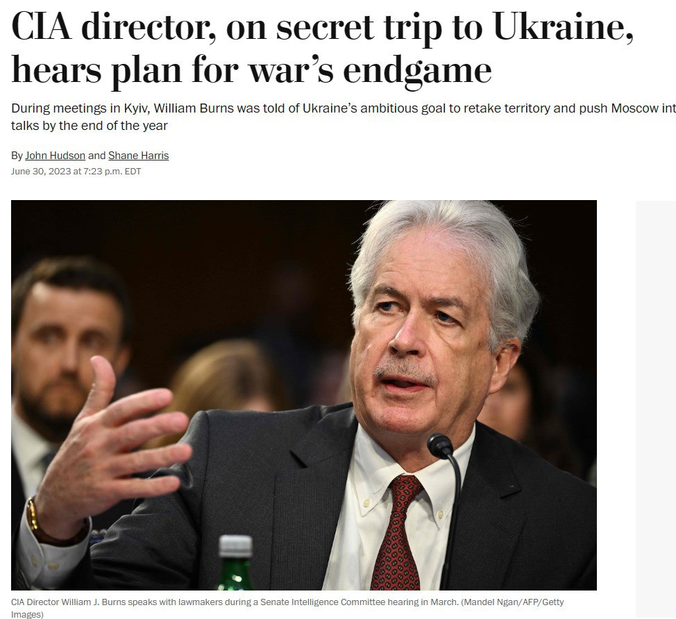 В Киеве в июне побывал глава ЦРУ Уильям Бернс. Украинские власти сообщили ему о планах своего контрнаступления. Об этом пишет издание Washington Post.