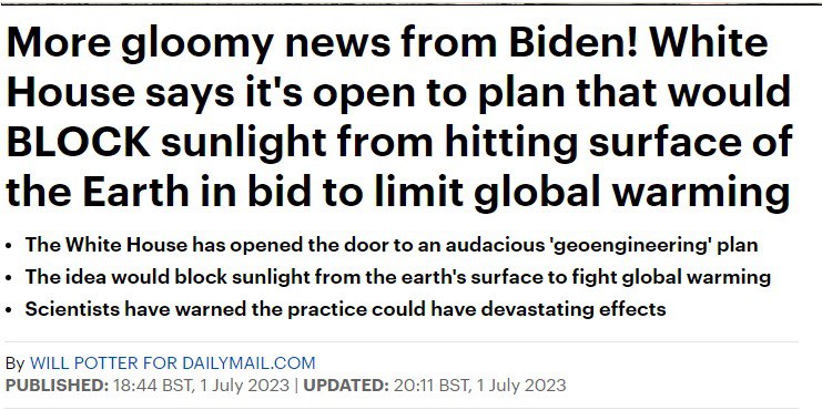 "Белый дом открыл дорогу для смелого плана геоинженерии. Речь о блокировке солнечного света для борьбы с глобальным потеплением. Ученые предупредили, что эта практика может иметь разрушительные последствия", - говорится в публикации.