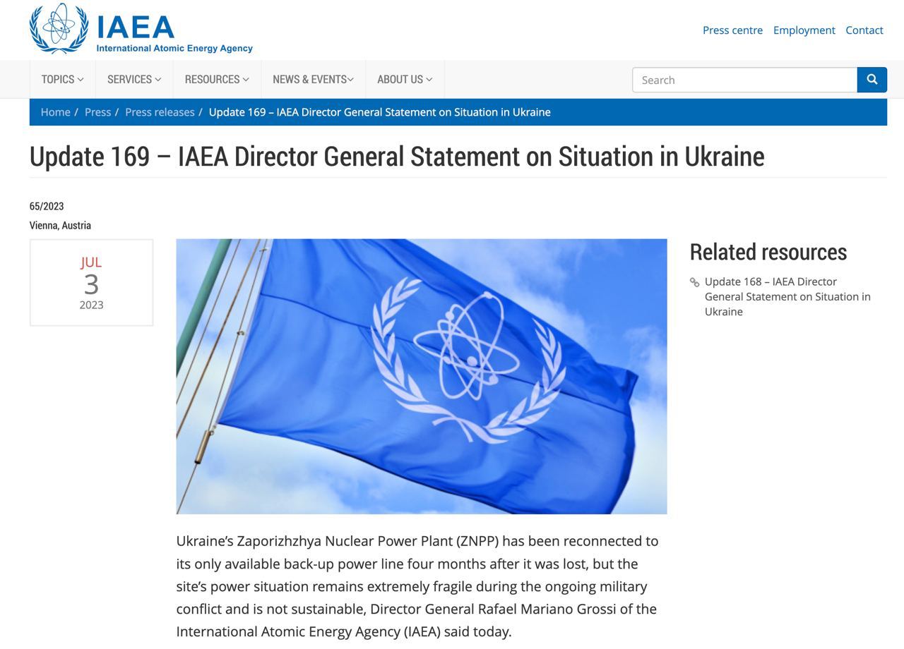"Несмотря на то, что повторное подключение резервной линии электропередачи является положительным, положение с внешним электроснабжением станции остается уязвимой, что подчеркивает ненадежную ситуацию с ядерной безопасностью и безопасностью на площадке", - сказал Гросси.
