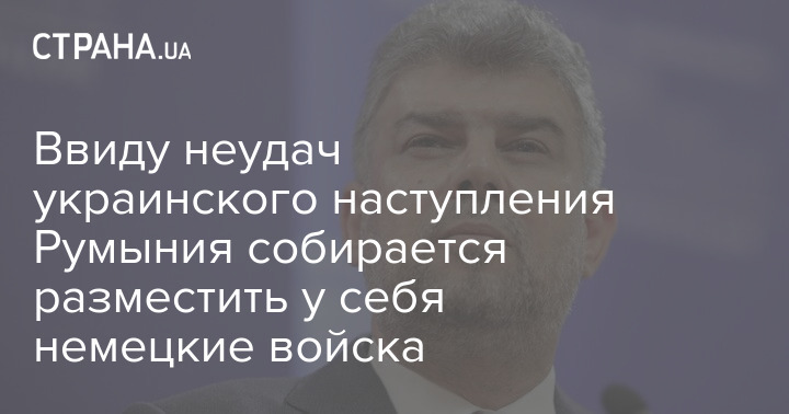 "Ввиду неудач украинского контрнаступления, на территории Румынии должны на постоянной основе быть размещены немецкие солдаты", — заявил Чолаку.