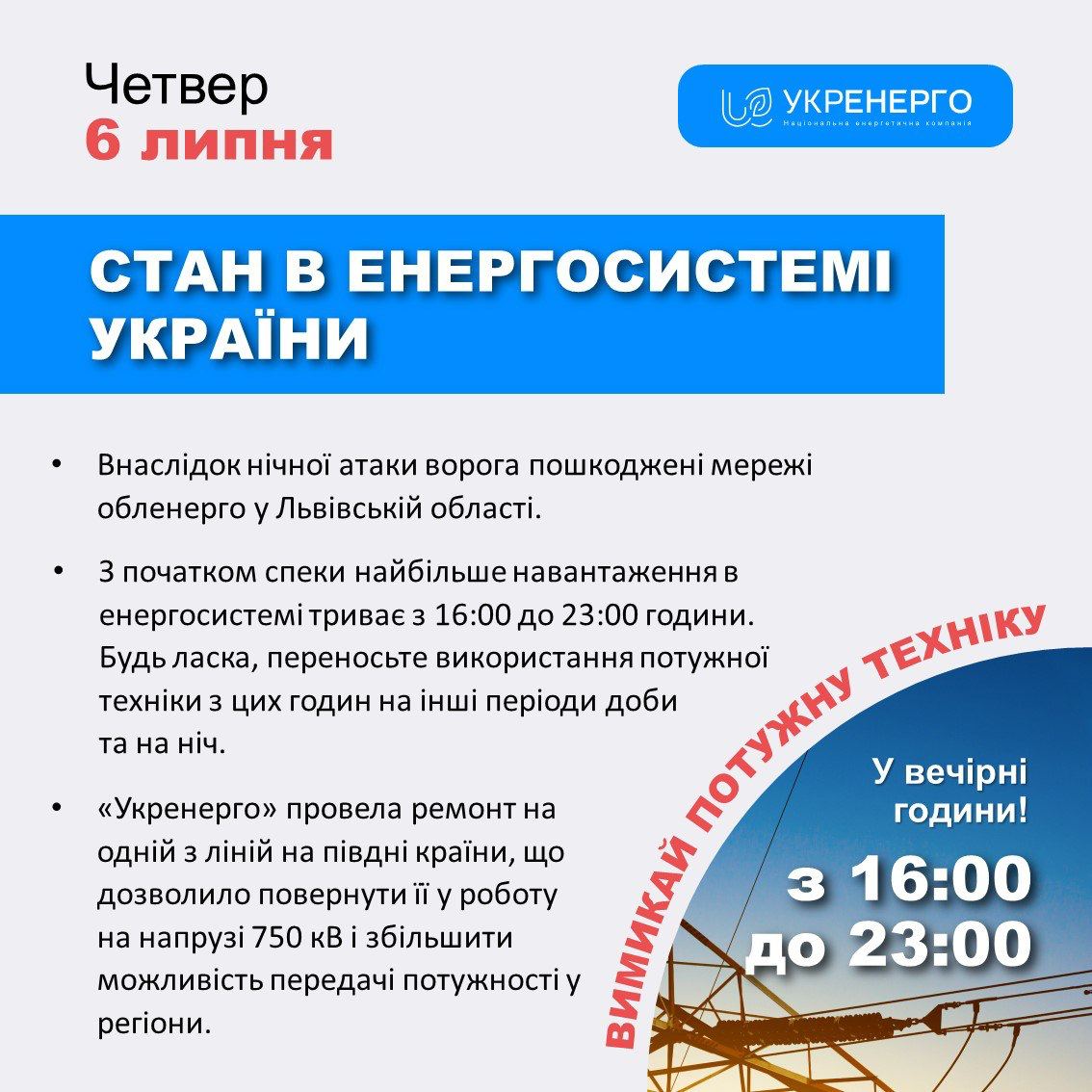Об этом сообщает "Укрэнерго".