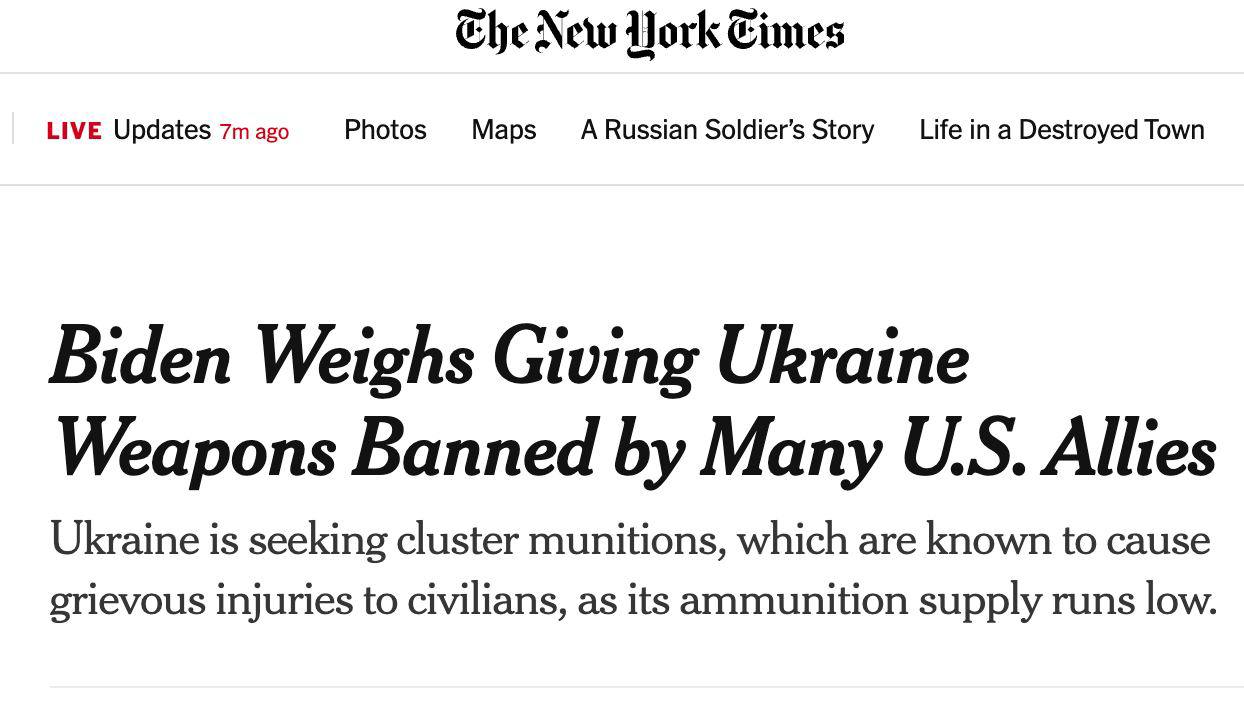 23.16 Решение США передать Украине кассетные боеприпасы было принято, потому что у нее заканчивались обычные снаряды.