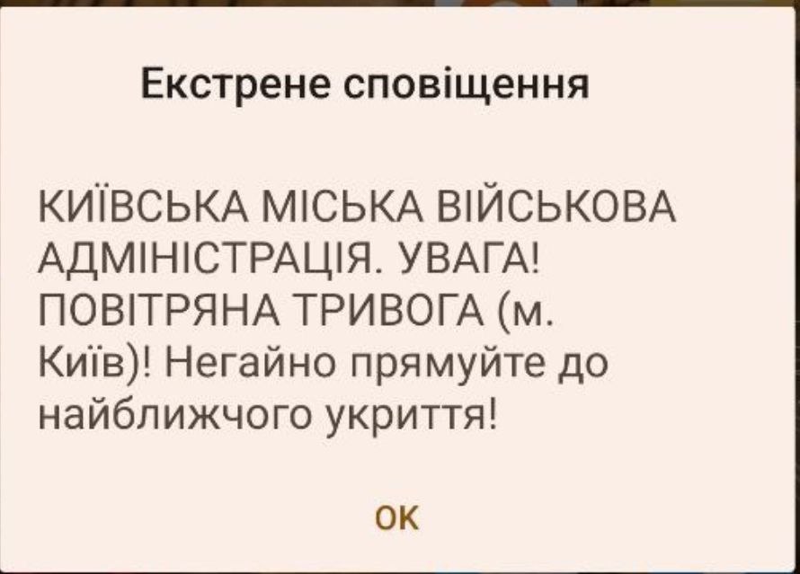 21.50 Киевлянам на телефоны массово приходят экстренные оповещения о тревоге с очень громким звуком.