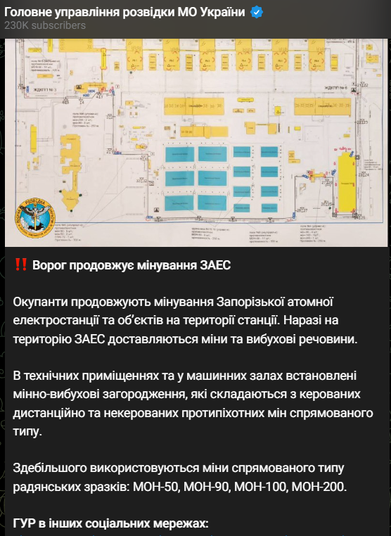 11:30 Россияне продолжают минирование Запорожской атомной электростанции и объектов территории станции. На территорию ЗАЭС доставляются мины и взрывчатые вещества.