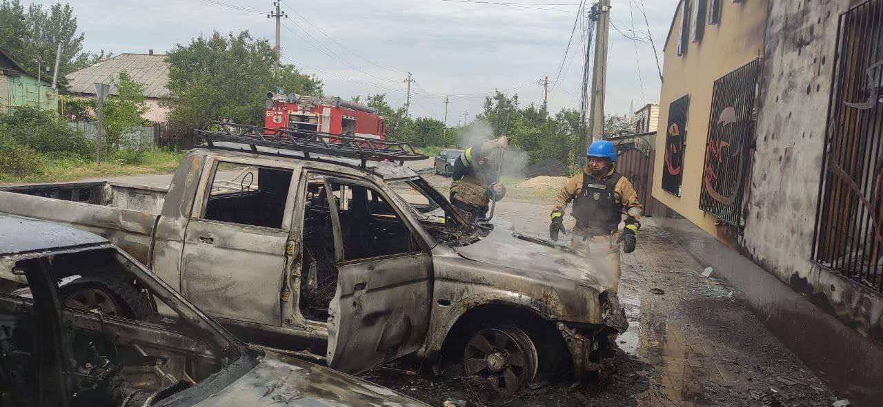 Спасатели потушили пожар частного жилого дома, пристройки к типографии и трех легковых автомобилей, загоревшихся в результате обстрела.