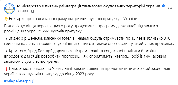 Кроме того, правительство Болгарии поручило в течение двух месяцев разработать предложения по трудоустройству и образованию для украинцев.