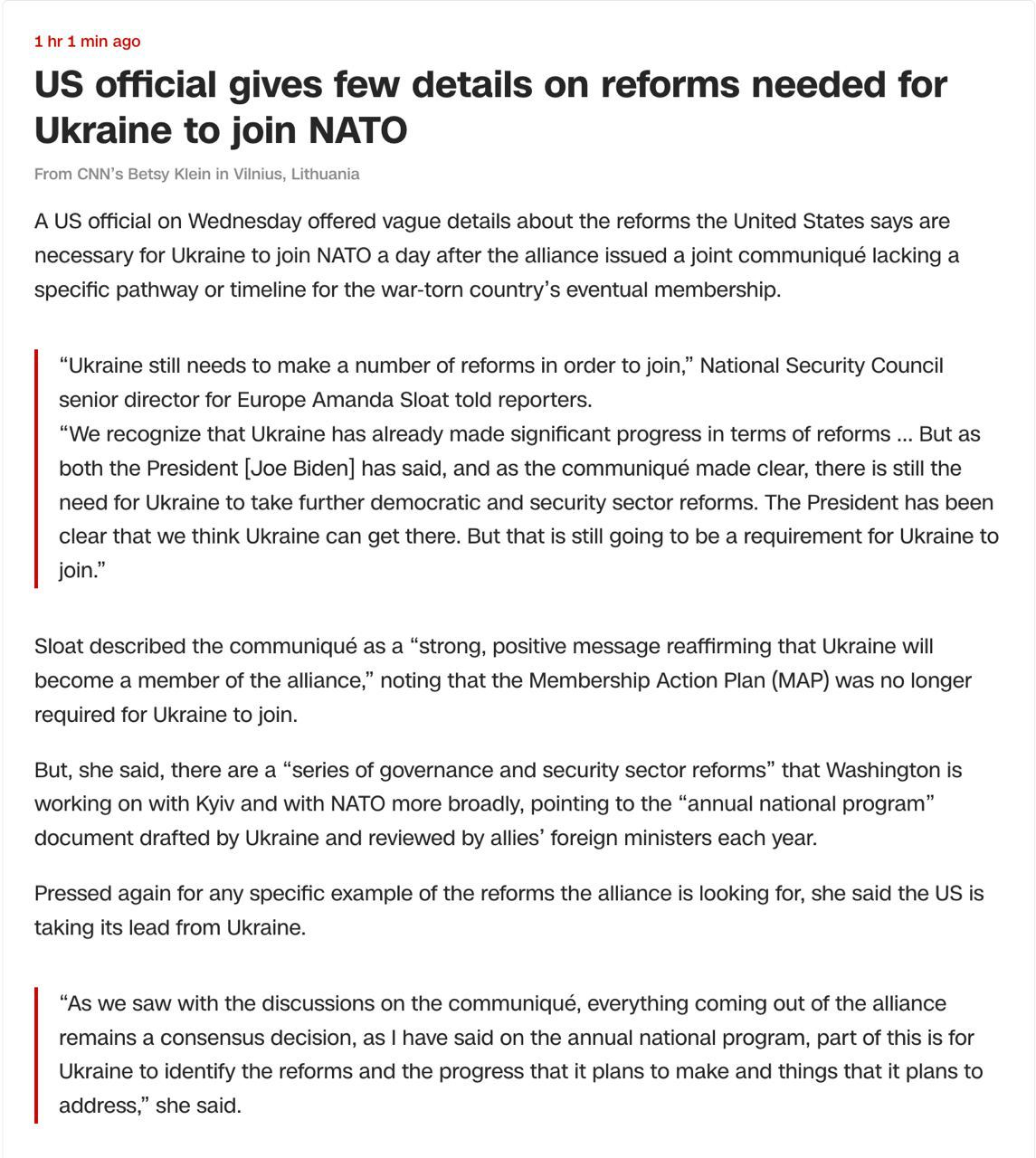 При этом вчера официальный представитель Госдепартамента США Мэтью Миллер заявил, что вступление Украины в НАТО во время конфликта означало бы войну США с Россией.