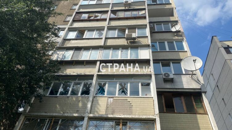 Здесь обломки повредили балкон на пятом этаже 16-этажного дома. Из-за падения обломков балкон загорелся, но, к счастью, в 82-й квартире, где произошло возгорание, никто не проживает. На данный момент квартиру опечатали сотрудники национальной полиции.