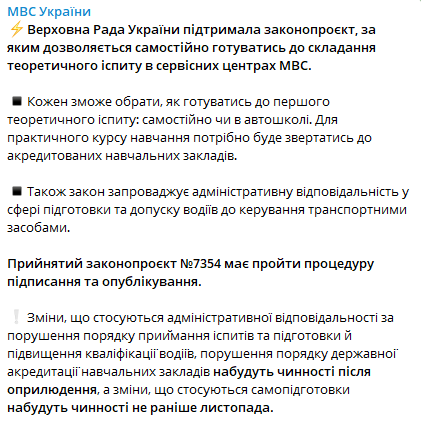 Принятый законопроект №7354 еще должен пройти процедуру подписания и опубликования.