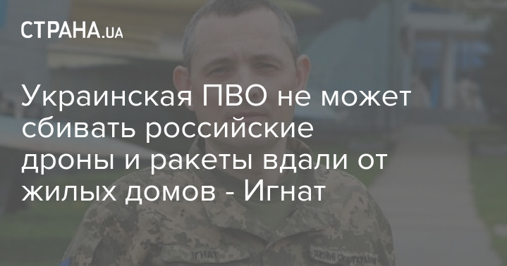 Украинская ПВО не может сбивать российские дроны и ракеты вдали от жилых домов. Об этом заявил спикер Воздушных сил ВСУ Юрий Игнат в эфире национального телемарафона.