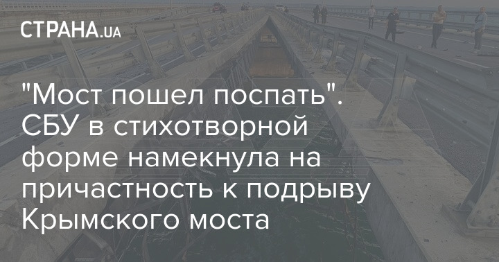 Спецслужба опубликовала стихи о том, что мост "пошел поспать", и добавила, что "музыка народная, слова СБУ".