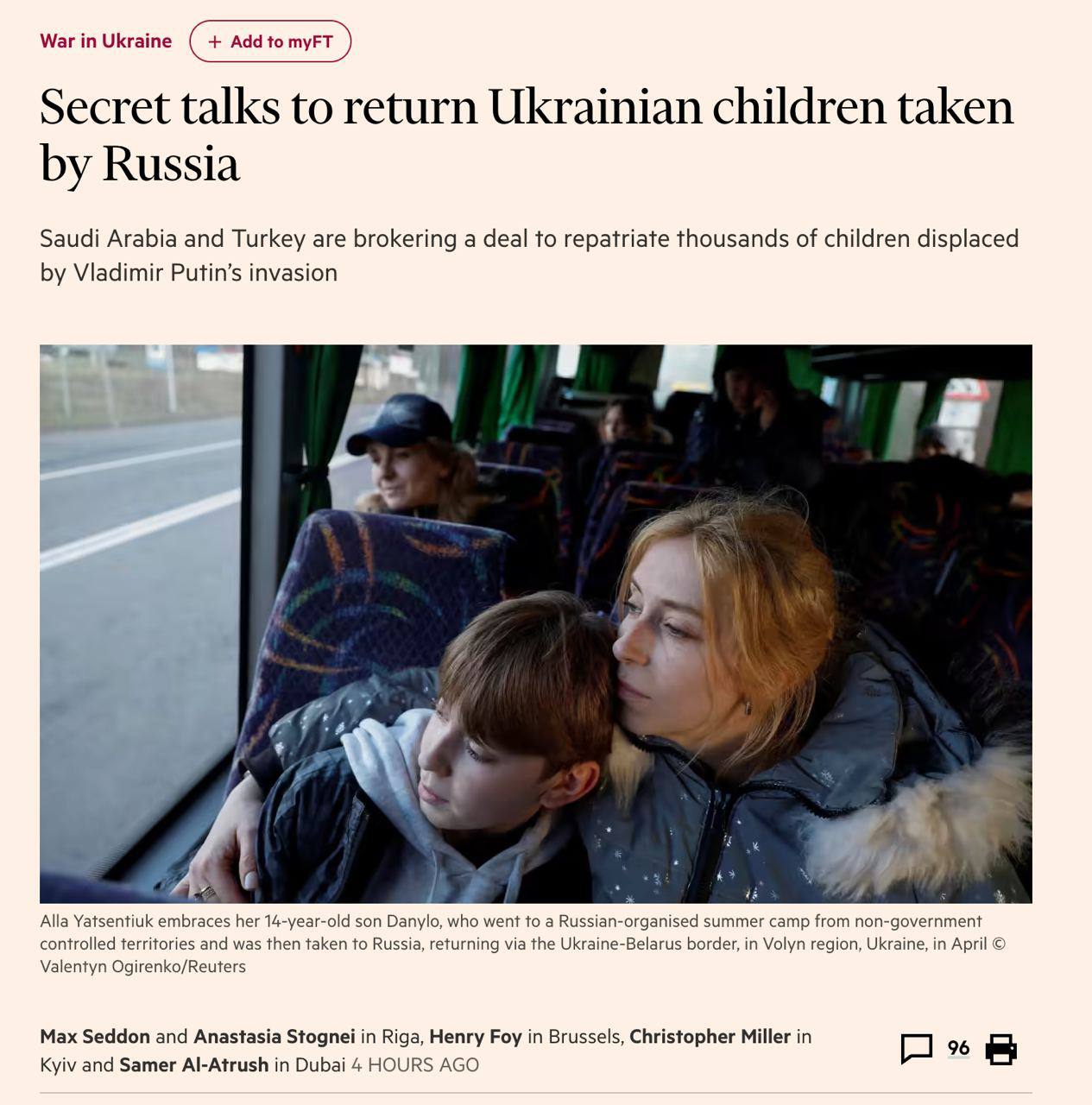 Уже несколько месяцев ведутся секретные переговоры о возврате тысяч украинских детей, вывезенных в РФ, сообщает Financial Times со ссылкой на источники.