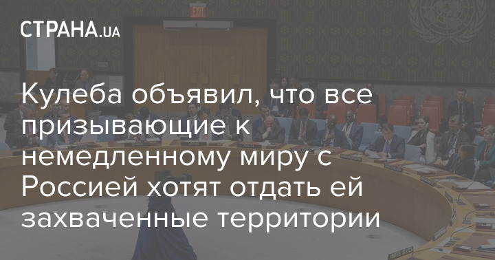 Глава МИД Украины Дмитрий Кулеба считает, что страны, призывающие к немедленному миру с Россией, хотят отдать РФ захваченные ею украинские территории.