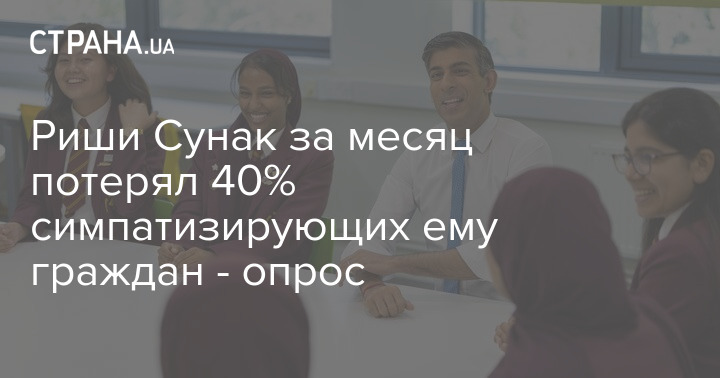 Рейтинг одобрения политики Сунака с июня обвалился на 40 процентов, или на шесть пунктов.