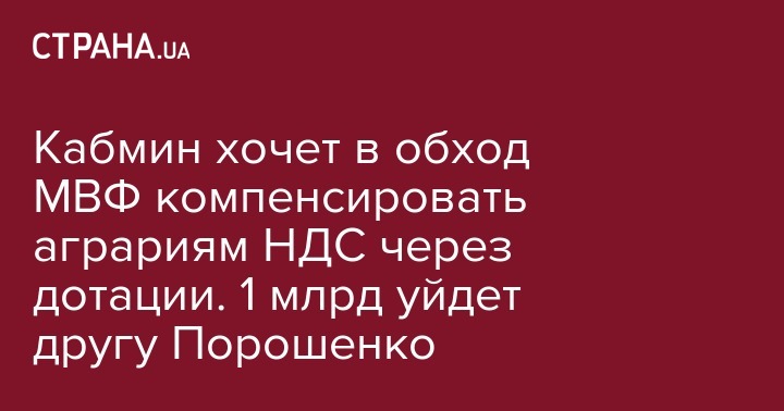 Таким образом правительство намерено обойти запрет МВФ на налоговый спецрежим для аграриев, поскольку практика дотаций распространена и в самом ЕС.