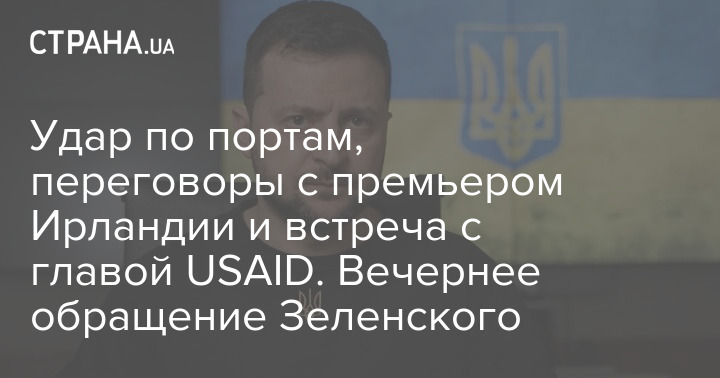 Удар по портам, переговоры с премьером Ирландии и встреча с главой USAID. Вечернее обращение Зеленского