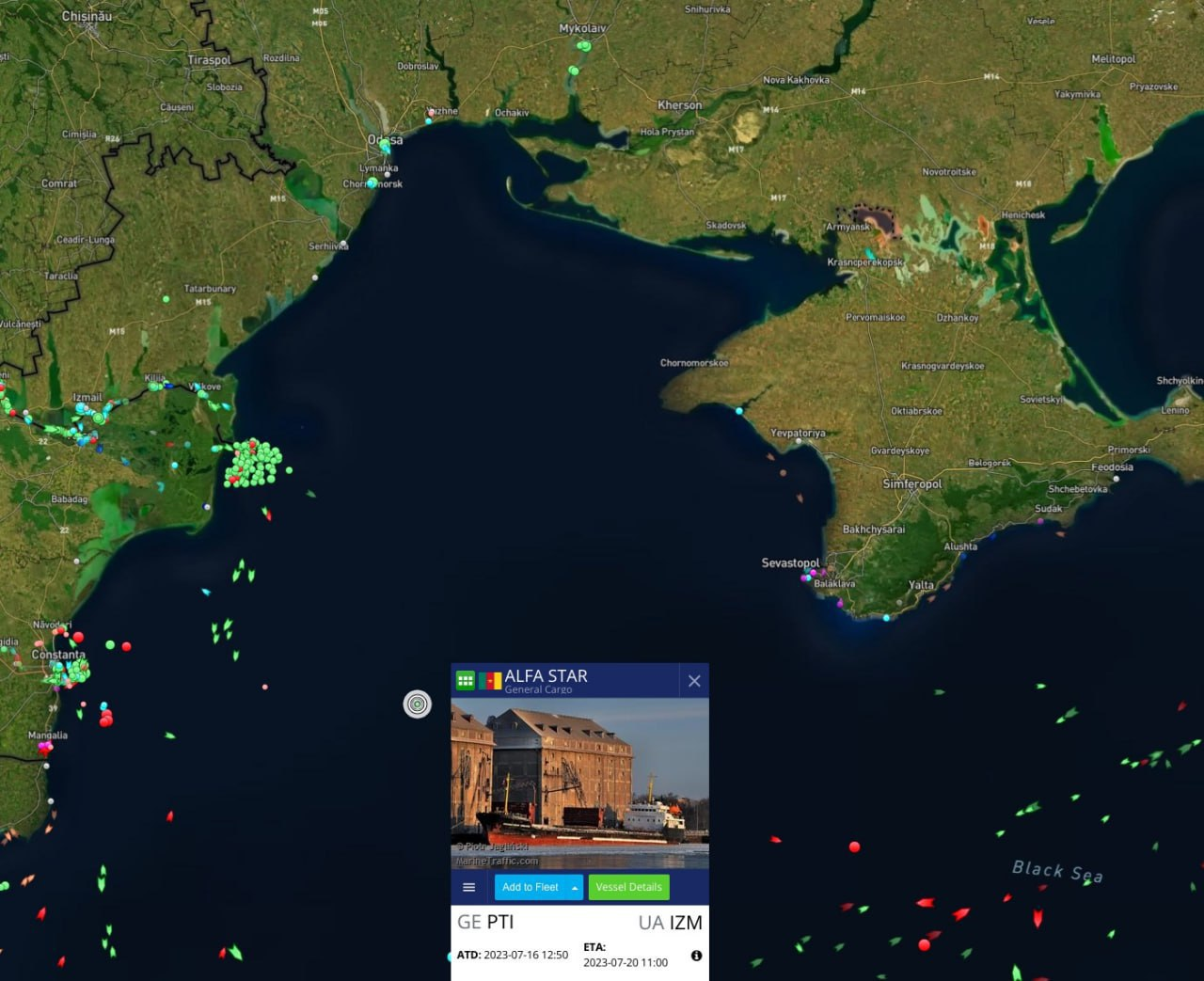 Сообщается, что все они следуют в направлении порта Измаил на границе с Румынией. Одно из судов — сухогруз Alfa Star под флагом Камеруна.
