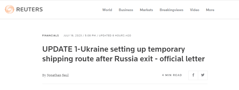Согласно письму, Украина заявляет, что этот механизм будет работать для судов, которые находятся в украинских территориальных водах или направляются в или из украинских портов.