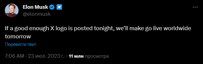 "Если сегодня вечером будет опубликован достаточно качественный логотип X, завтра мы опубликуем его по всему миру", - написал Маск.
