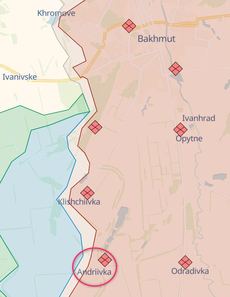 Предполагаемая цель этой атаки - перерезать сообщение Андреевки с Клещеевкой и блокировать ее с юга. За Клещеевку тоже идут ожесточенные бои - ранее сообщалось, что ВСУ закрепились на высотах западнее Клещеевки.
