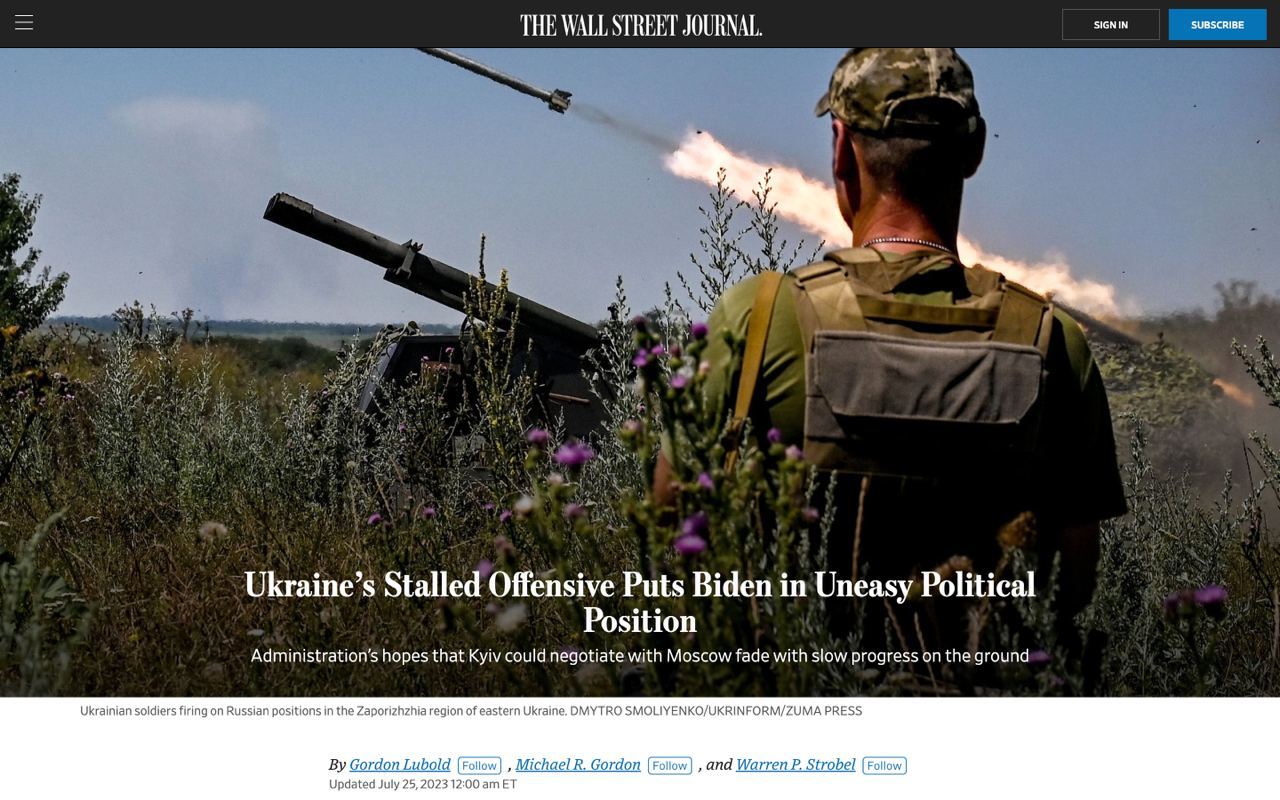 "Застопорившееся наступление Украины ставит Байдена в непростое политическое положение". Под таким заголовком вышла статья The Wall Street Journal, посвященная дальнейшим действиям Запада по оказанию помощи Киеву.