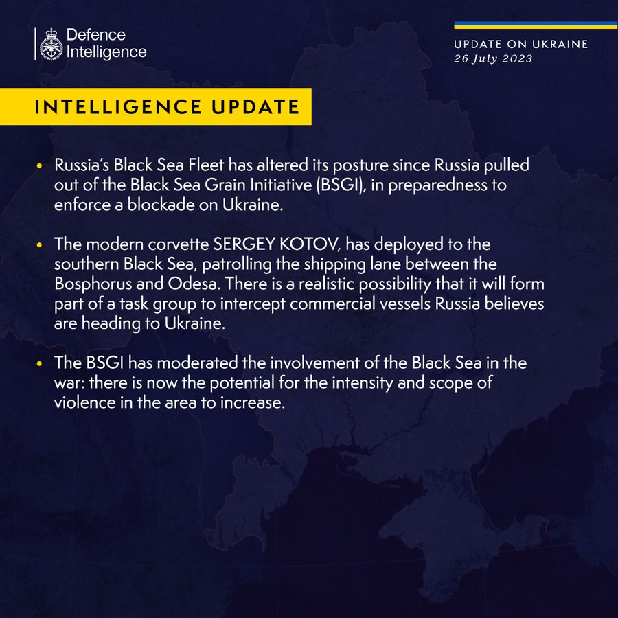 Зерновая инициатива смягчила участие Черного моря в войне, но теперь существует вероятность увеличения интенсивности и масштабов насилия в этом районе, отмечают в разведке.
