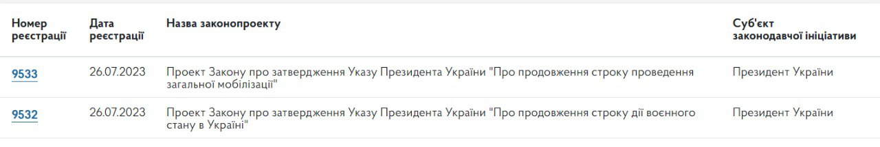 Президент Владимир Зеленский внес в Верховную Раду законопроекты о продлении военного положения и мобилизации на 90 дней с 18 августа.