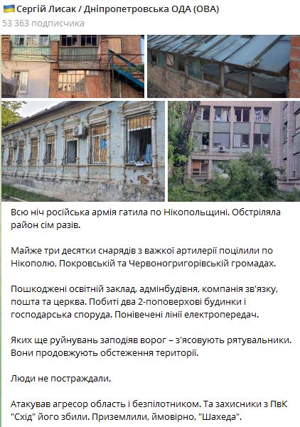 Почти три десятка снарядов попали по Никополю, Покровской и Красногригорьевской громадам.