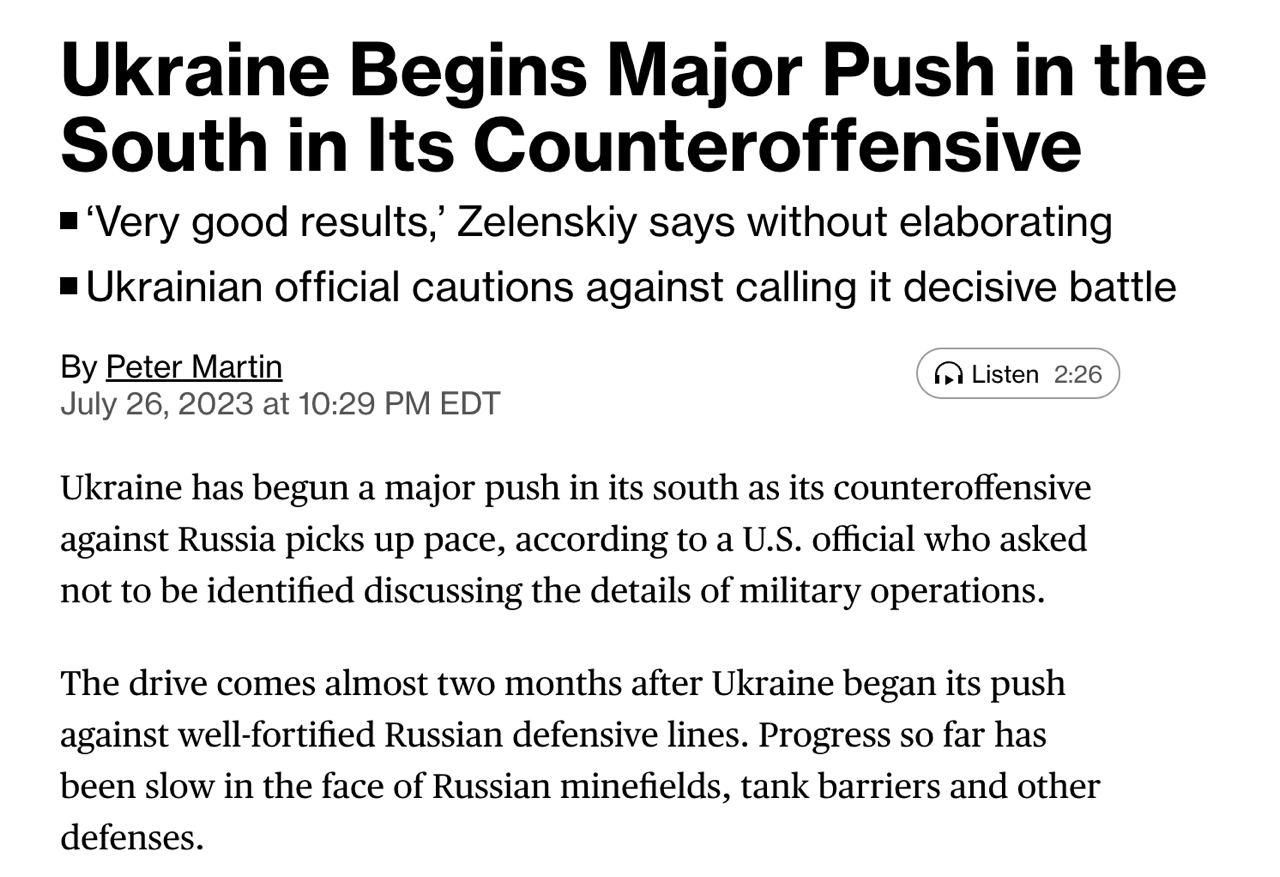 И еще одна статья в западном СМИ о начале крупного наступления Украины на юге.