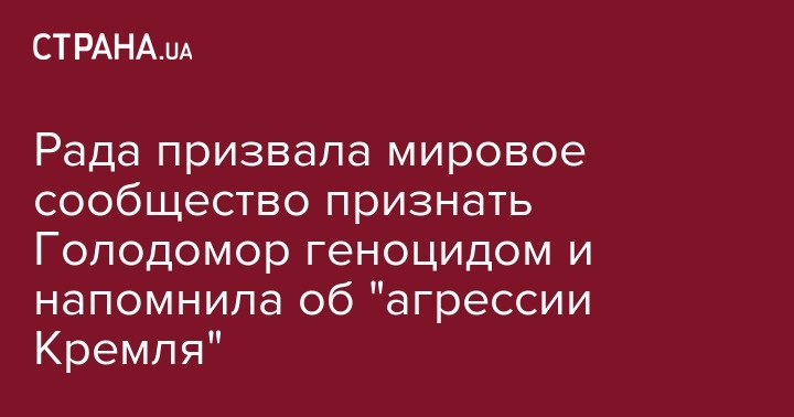 Рада призвала мировое сообщество признать Голодомор геноцидом и напомнила об "агрессии Кремля"