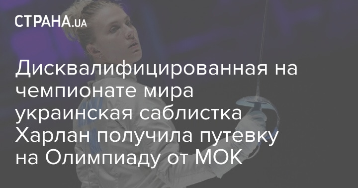 Дисквалифицированная за отказ подать руку российской сопернице украинская саблистка Ольга Харлан получила автоматическую квалификацию на Олимпиаду-2024 Международного олимпийского комитета (МОК).