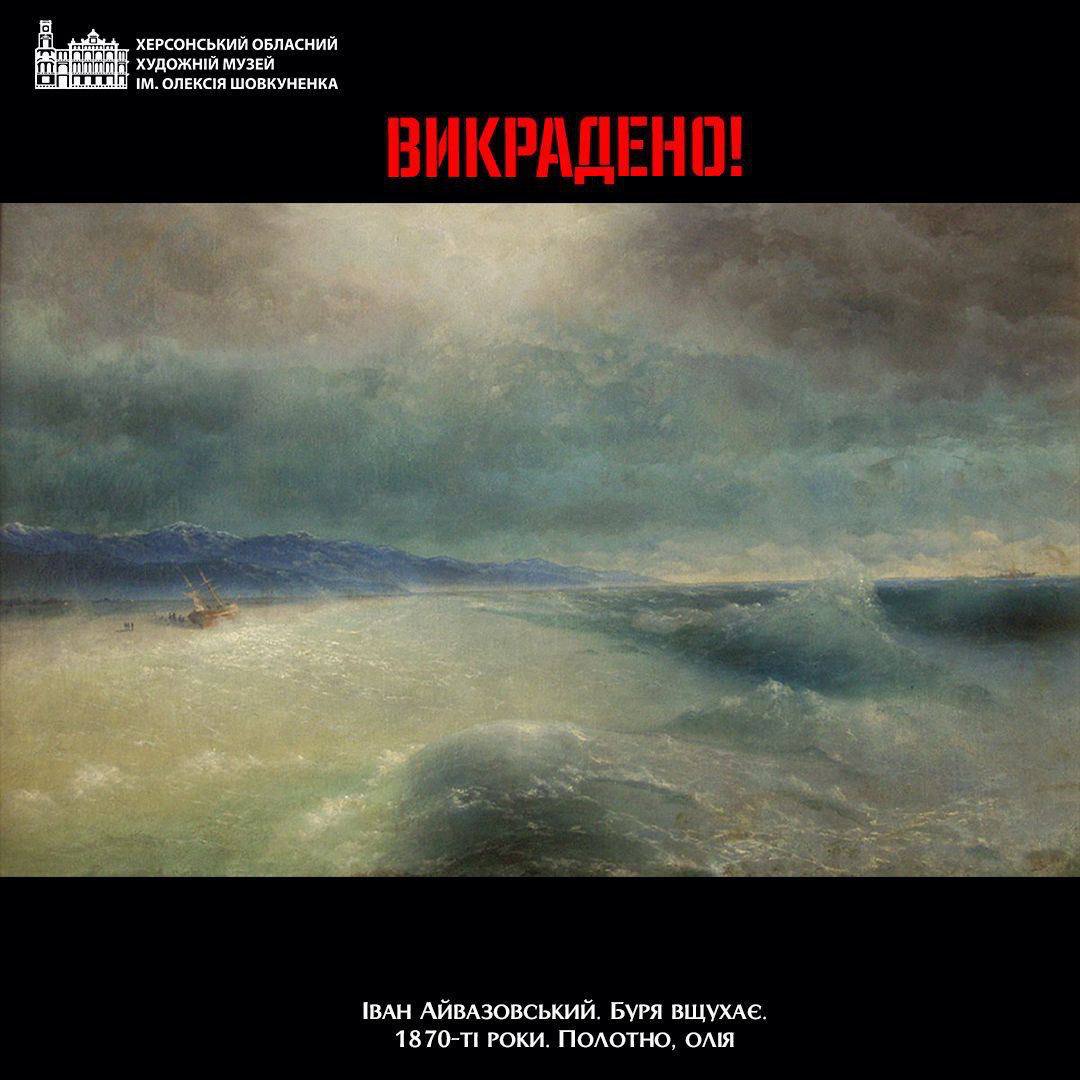 Музей утверждает, что были украдены морские пейзажи "Буря утихает" (1870-х годов), "Вид города Одессы" (дата создания не указана) и "Море" (1900 года).
