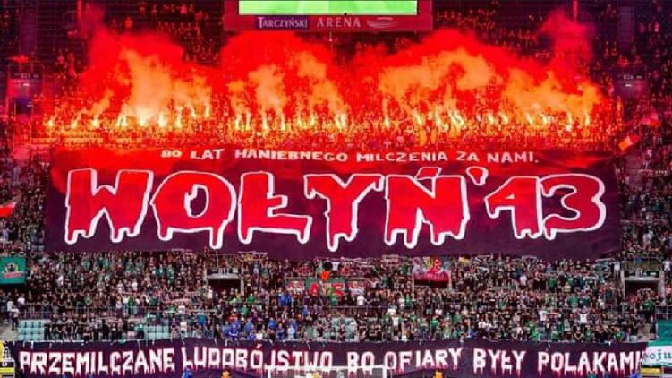 "Украинцы убивали детей на Волыни", "80 лет позорного молчания позади. Волынь-43"- баннеры такого и еще более резкого содержания появились на трибунах во время матча между командами "Сленск Вроцлав" и "Заглембе Любин".