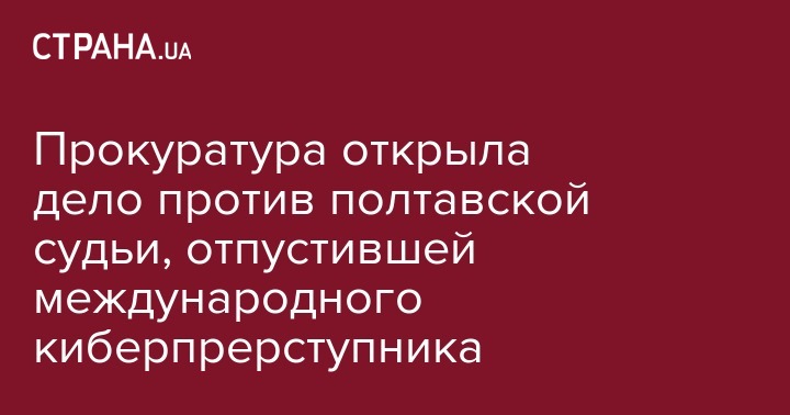 Прокуратура открыла головное дело против следственного судьи Октябрьского районного суда Полтавы, которая отпустила руководителя преступной кибергрупы Avalanche (Аваланч) Геннадия Капканова. Об этом сообщает пресс-служба Генпрокуратуры.