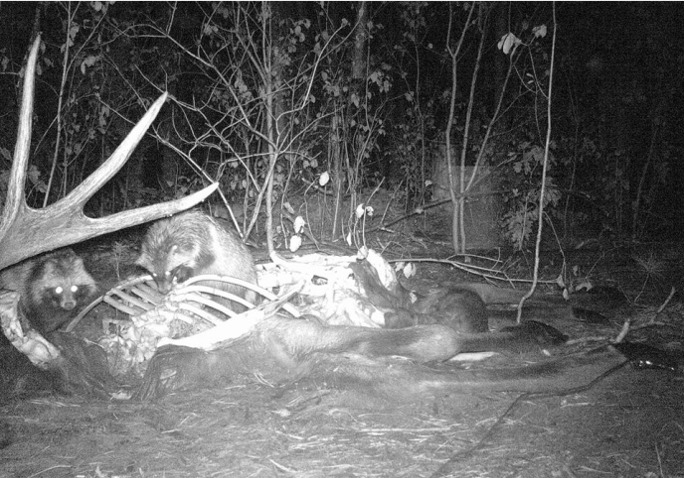 Чернобыльский заповедник показал фото, как еноты зоны отчуждения обглодали кости умершего там лося