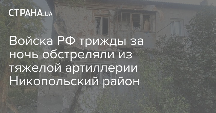 Сегодня ночью российские войска трижды обстреливали из тяжелой артиллерии Никопольский район Днепропетровской области.